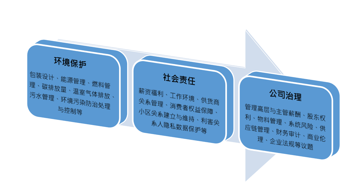 | 环境 | (一)减少和杜绝任何类型的资源耗费及废弃物的产生。 (二)辨识和管理释放到四周环境中会造成危害的化学物质。 (三)对有机化学物质,排放管制系统的性能进行例行监测。 (四)禁止或限制在产品和制造过程中纳入禁用的物质。 |